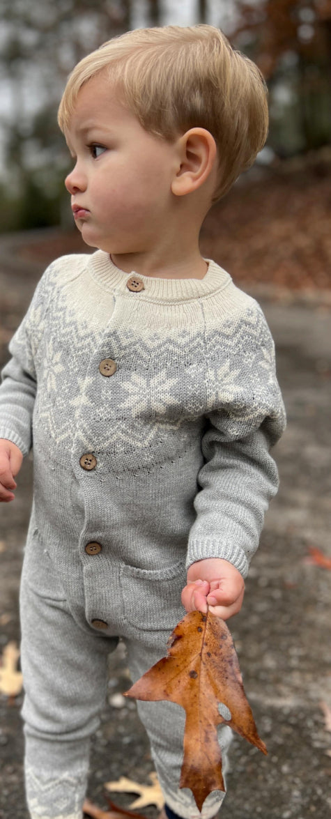 Polar Knitted Romper Grey Fairisle, Fall or Winter, so cute and cozy.