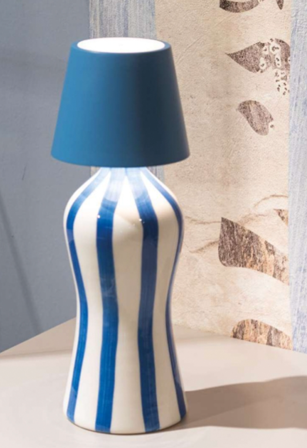 Rechargeable battery-operated, cordless lamp with a silicone stopper cork: the lamp can be placed on a bottle, turning it into a luminous object.