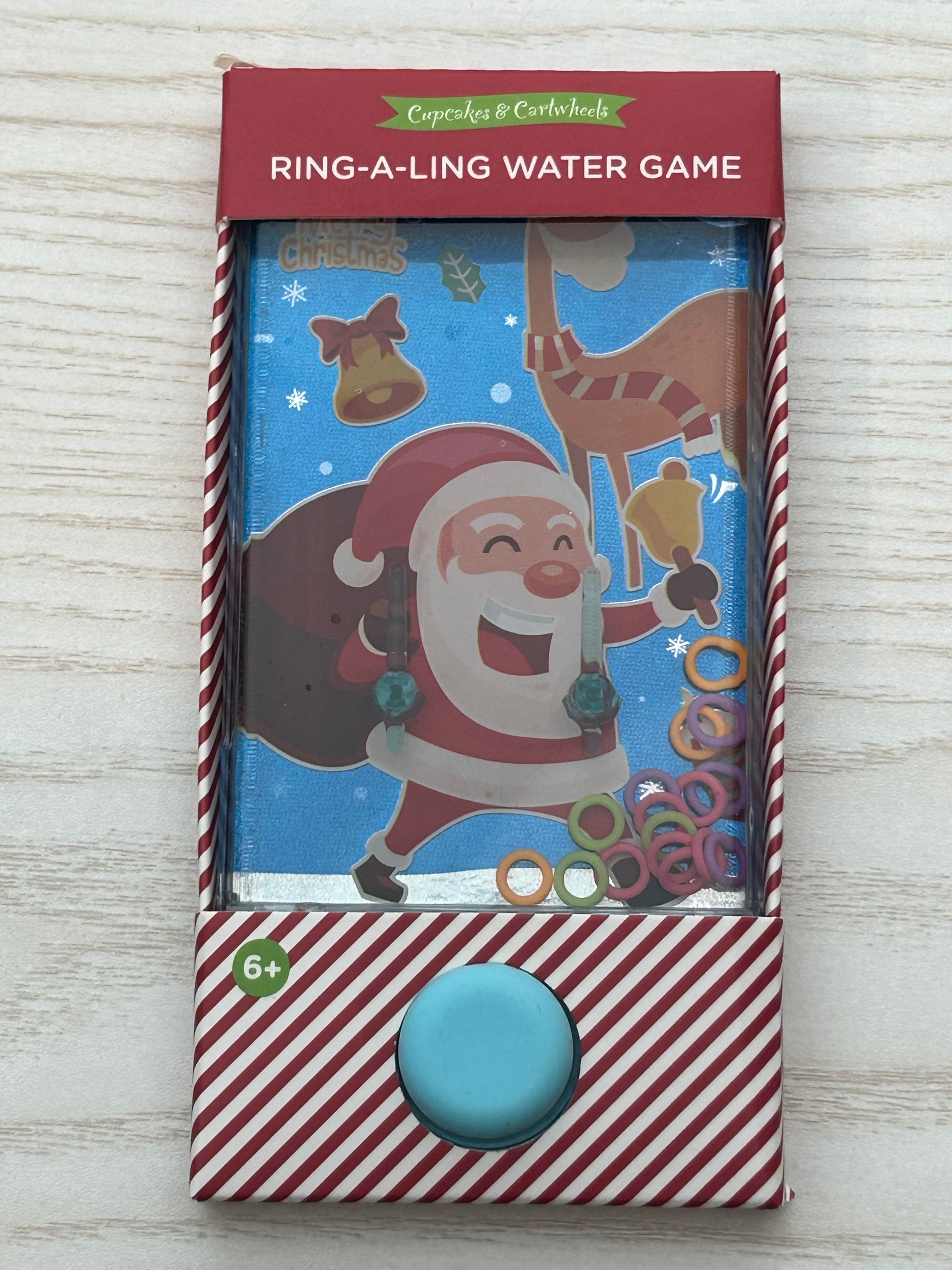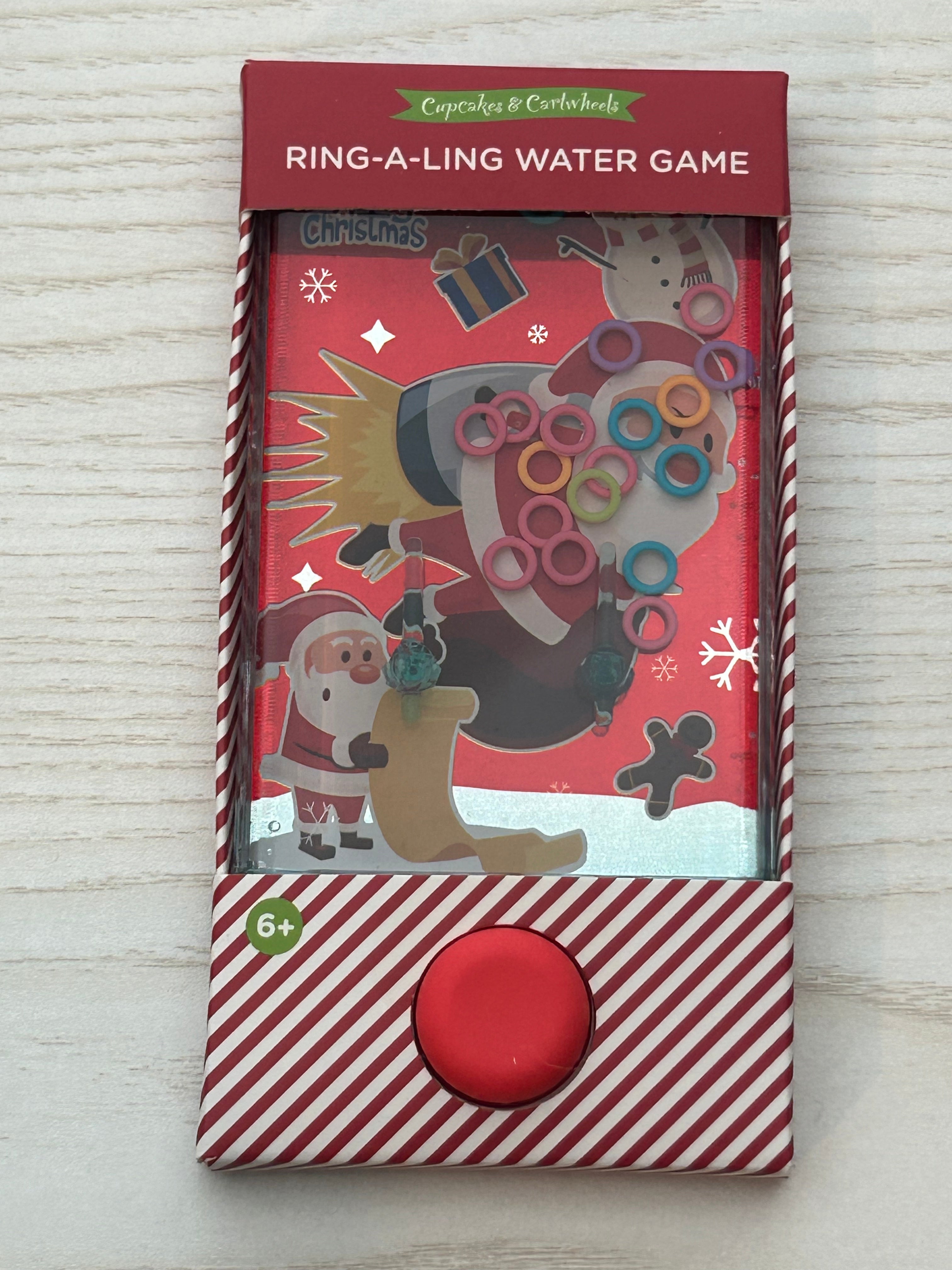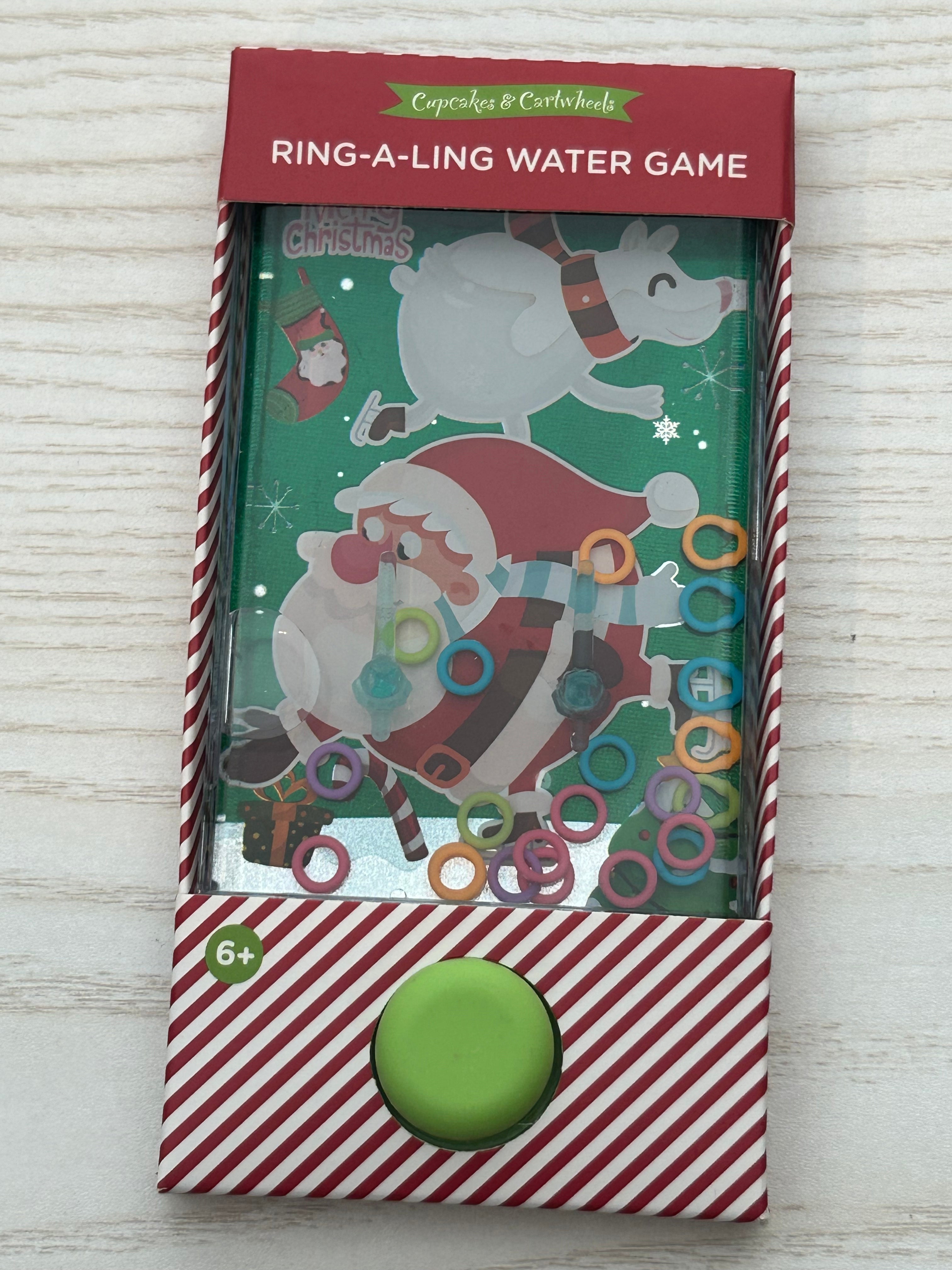 Ring-a-ling Holiday Water Game in Gift Box featuring Santa Clause, 3 different colors, Lake Blue, Green, or Red! Ho-Ho-Ho!