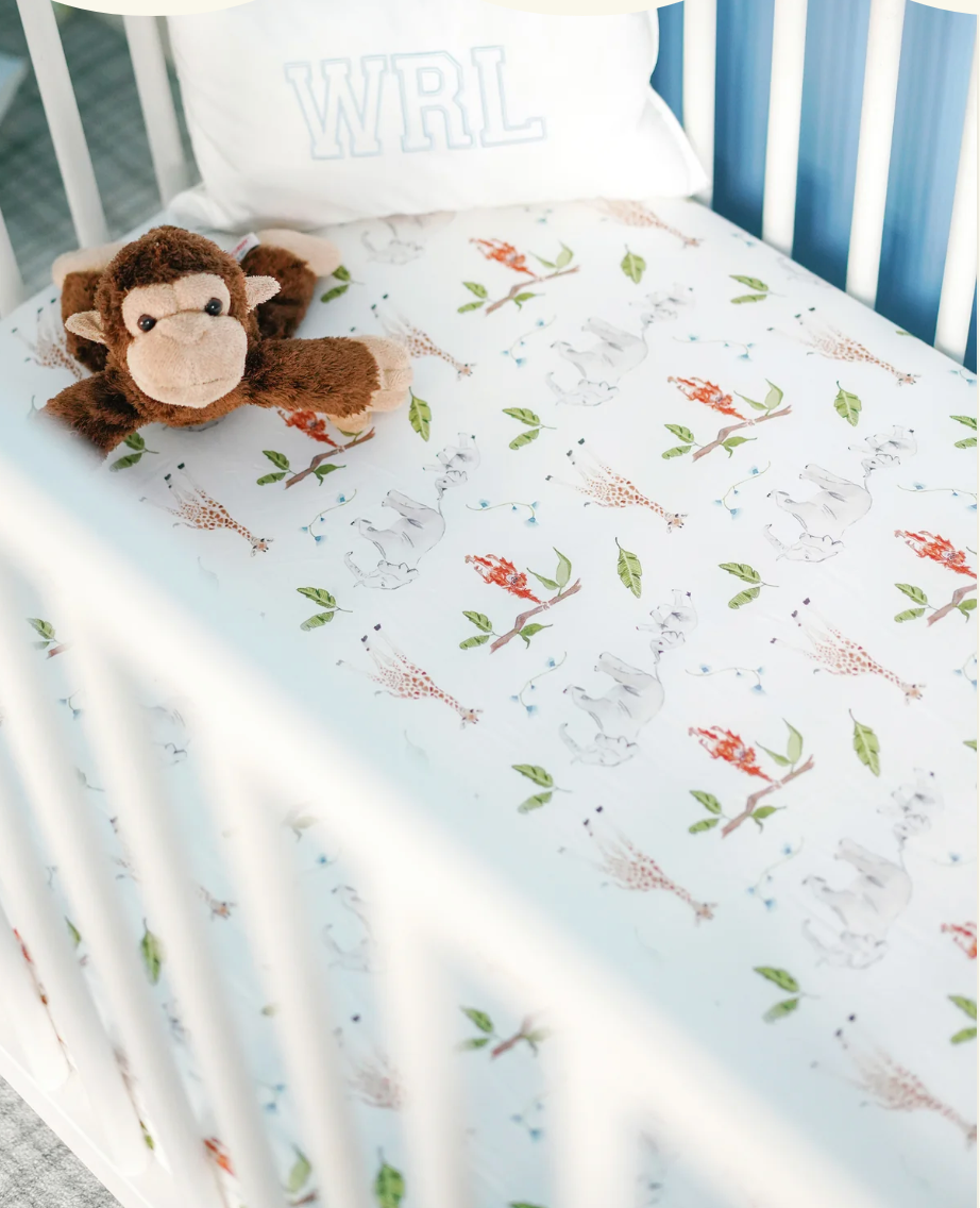 100% bamboo ensuring a soft, sweet sleep for your little one. Design is hand painted watercolor in the heart of Texas. The Crib Sheet fits snuggly on a standard crib mattress or toddler bed and can easily be washed and dried.