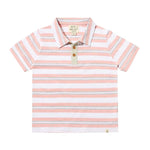 The pink, grey and white stripe polo is the perfect way to add a pop of colour and style to your little guy’s wardrobe!