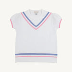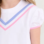 Add a pop of preppy charm to her wardrobe with our Short Puff Sleeve Cassidy Comfy Crewneck in Worth Avenue White, Park City Periwinkle and Hamptons Hot Pink! The adorable puff sleeves bring a feminine touch to this ultra-soft tee that's perfect for school, playdates, and everything in between. Elevated athletic style