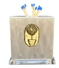 Add a touch of charm to your decor with our exquisite fine acrylic match striker. This stunning lucite-based acrylic match striker is not just sparkly but also durable and weighty, making it a must-have addition to your fine tabletop and tabletop decor. Our favorite collection, this match striker comes with 3-inch blue tipped matches, ready to light up your space in style. Choose from seven elegant colors and over 50 gold hand sculpted icons, including tortoise, lapis blue, pearl, gray, onyx, emerald, and raspberry, to perfectly complement your existing decor. Our hand sculpted gold icon collection boasts over 50 designs, so you can choose one that perfectly complements your fine tabletop decor. With dimensions of 4 x 4 x 4.5, this match striker is both practical and stylish, making it a perfect gift for your loved ones or a treat for yourself. Order yours now and add a touch of sophistication to your home decor.