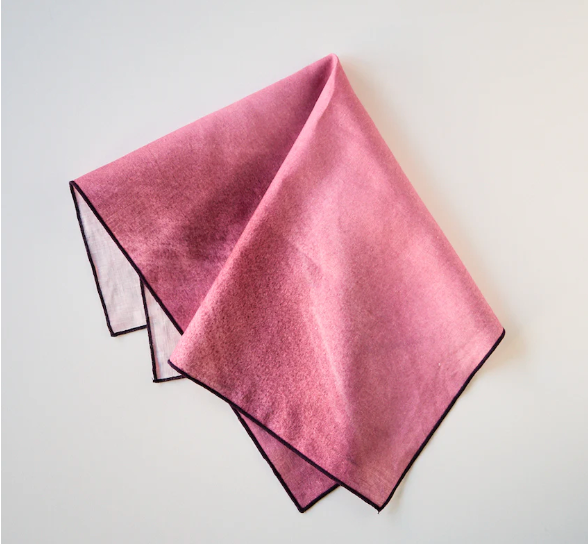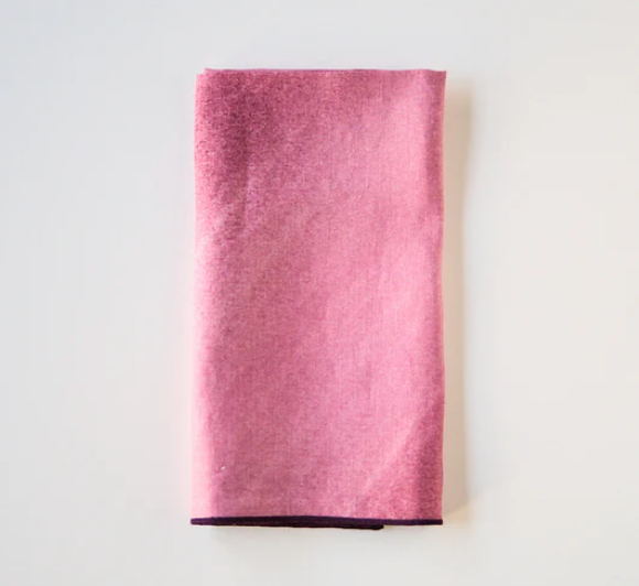 Sunbeam Solid Collection comes from an original oil painting by Goldie Home founder, Sara Roberts. The design portrays movement with bold brushstrokes and gradients in color. Each napkin is a detail of a larger painting; every napkin is 100% unique. The design is printed on an elegant + soft 100% linen. Our Stripe pattern comes in Rose and Grey with a variety of trim colors to choose from.