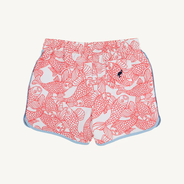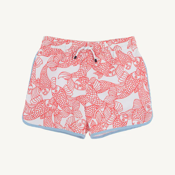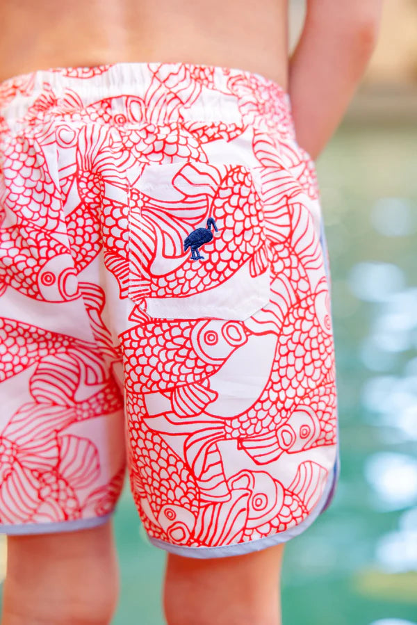 Your little one will be the star of every pool party in our Tanner Trunks in Big Fish (Red) with Beale Street Blue! These swim trunks combine playful style with a durable fit, perfect for tiny adventurers who are ready to dive into summer fun. Designed with comfort and cuteness in mind.