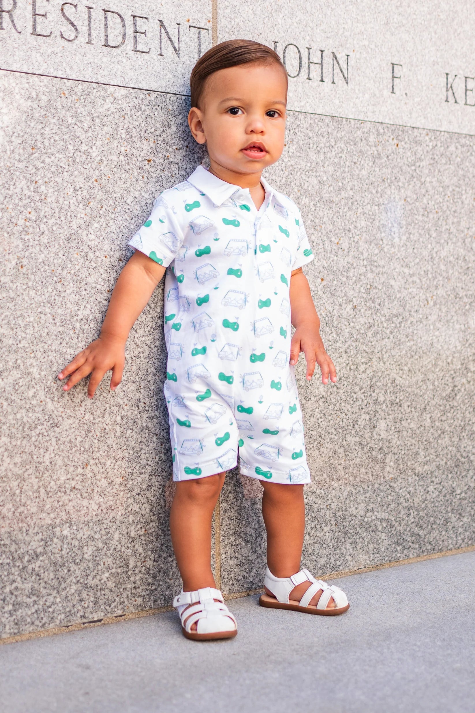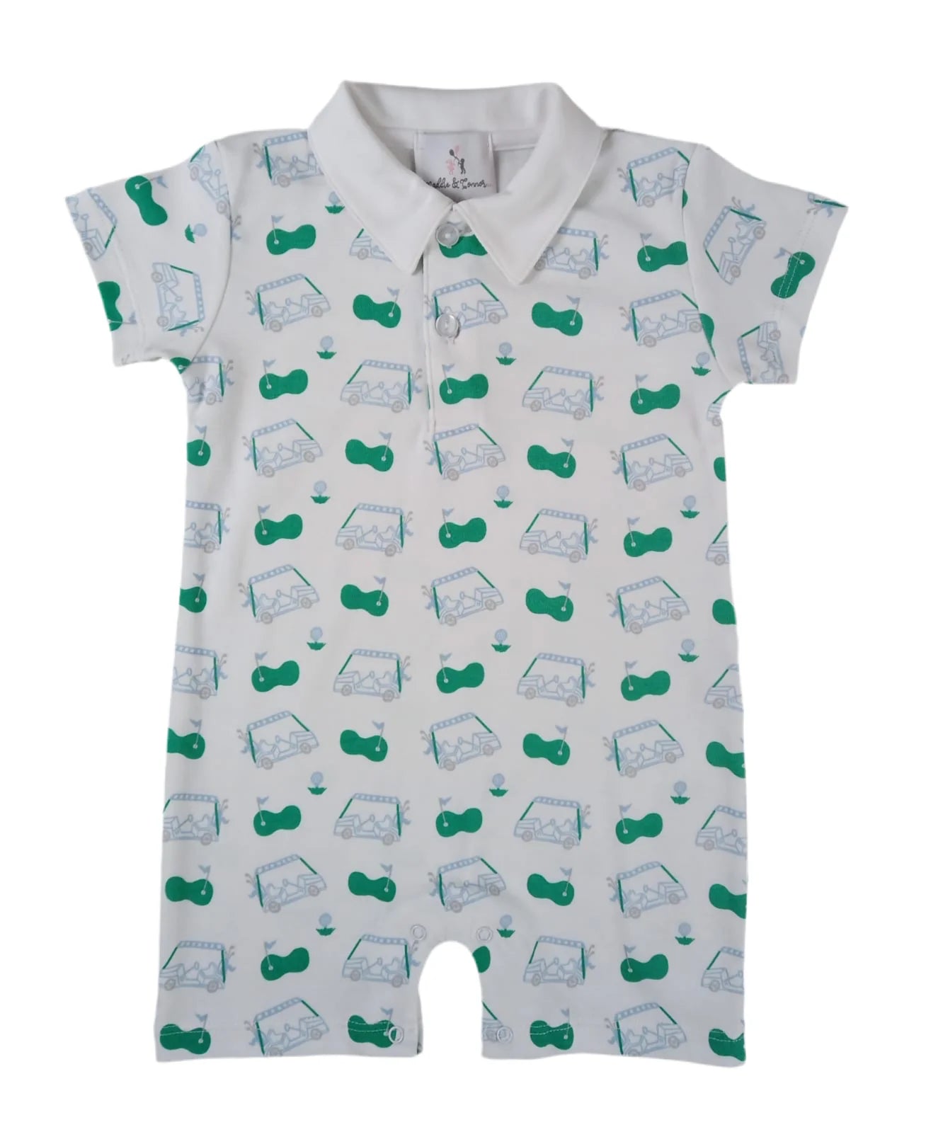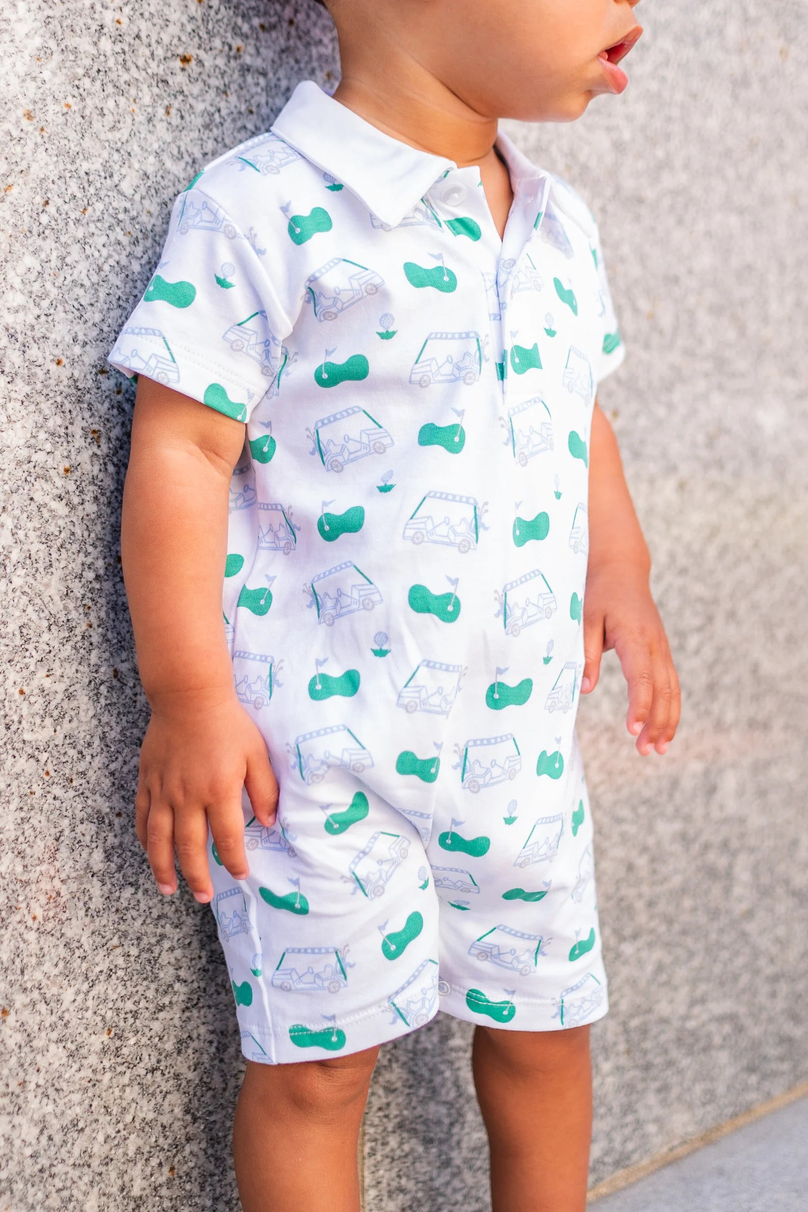 Our Tee Time boys romper is perfect for spring and summer days at the links! Our pima romper will have him cool and comfortable on and off the course! Fit is tts.