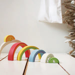 Stack these tunnel pieces together to make a real rainbow! A great first puzzle for your toddler to develop their matching skills, size and color recognition.