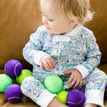 Serve up sweet dreams of Tennis in these Two Piece Pajamas! Hand-drawn print is like watching a rally, don't take your eye off the ball or you will miss all of the clever nods to the great sport cleverly represented in her print! Game, set, match - you'll be dreaming of ace serves in these tennis pj's!