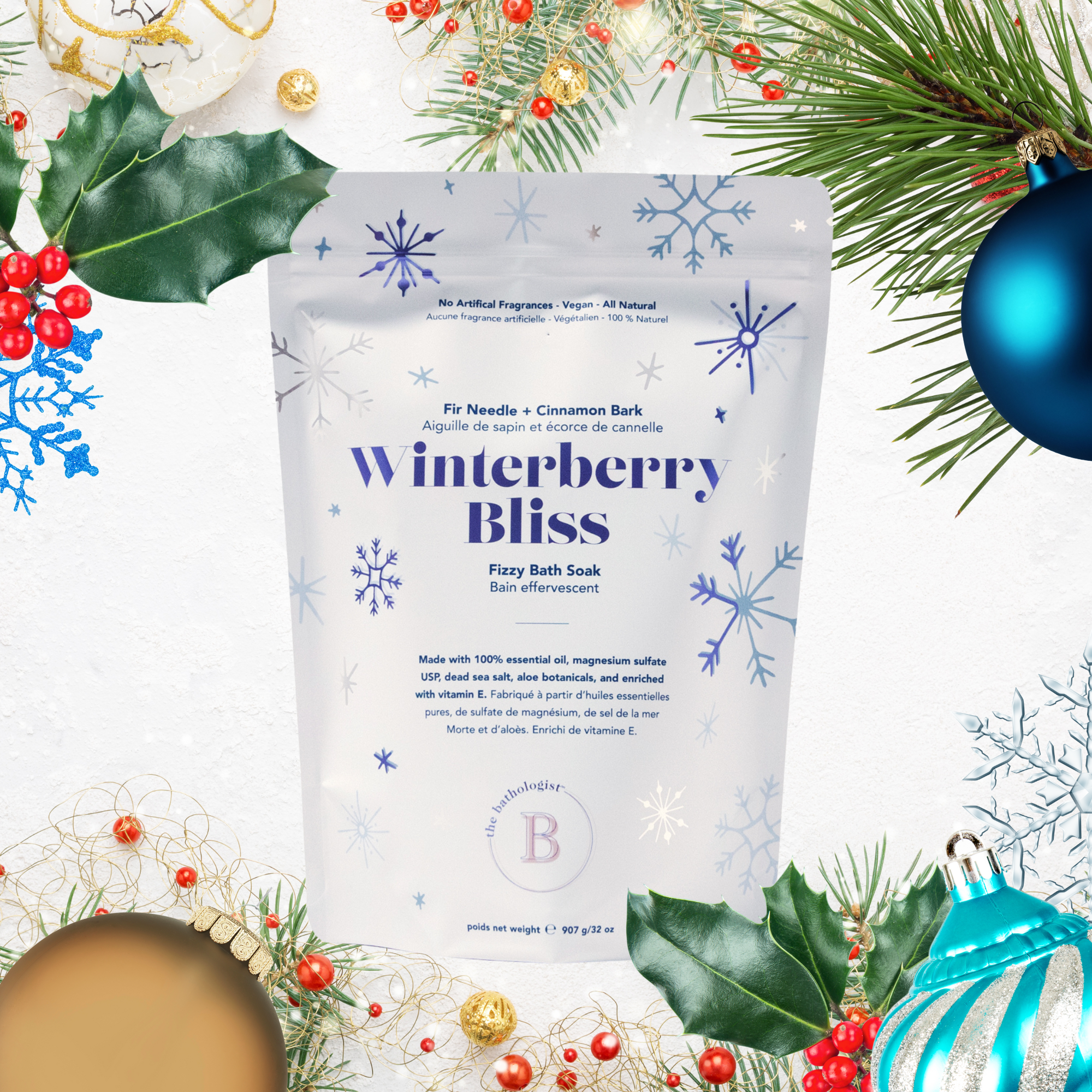 Indulge in the essence of winter with Winterberry Bliss, a holiday fizzy bath soak that captures the cozy, refreshing scents of fir needle and cinnamon. This festive soak creates a soothing, aromatic experience that warms the senses and relaxes the body, perfect for unwinding during chilly winter nights.