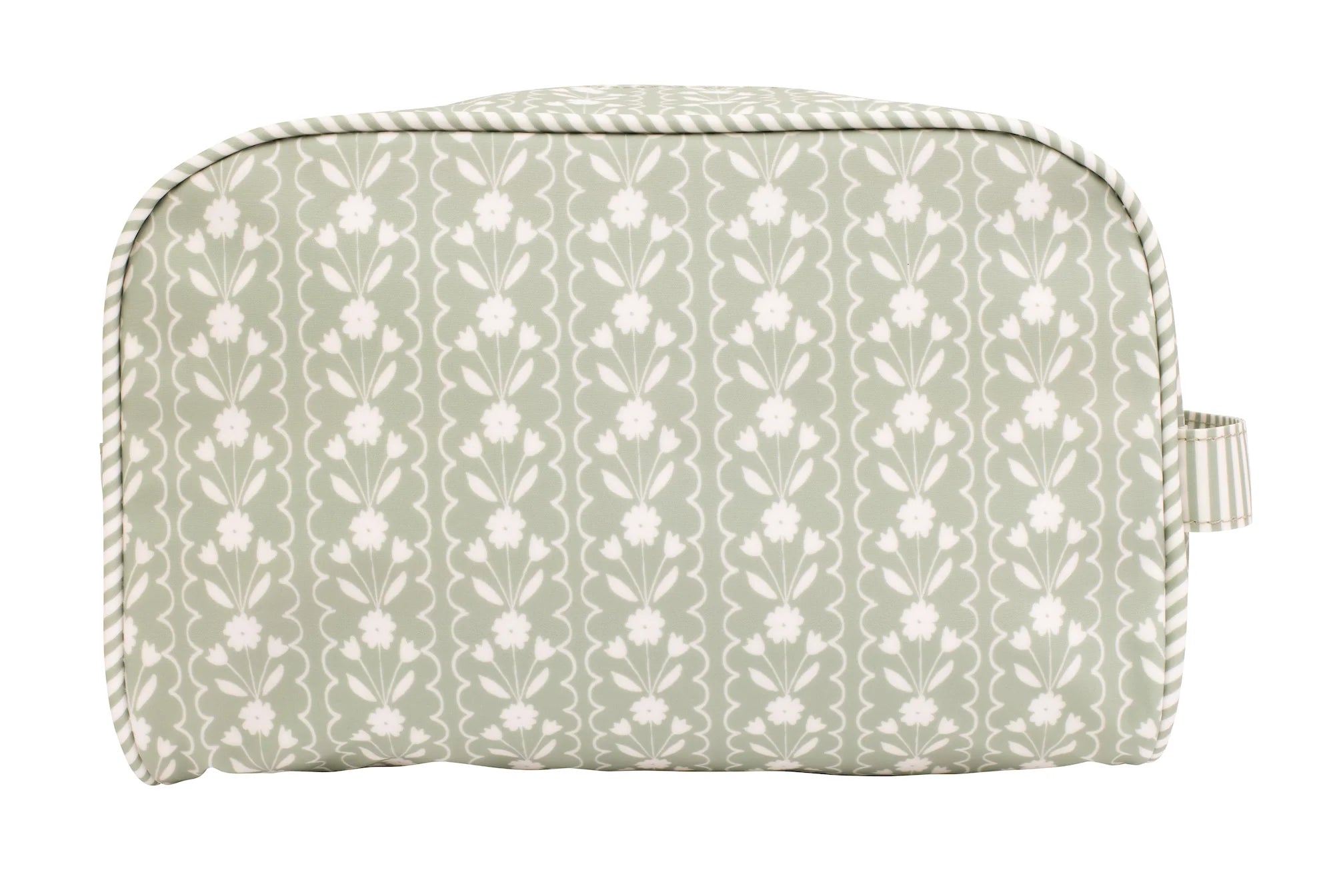 Coated, clean, and cute! The Dopp Kit is a must-have travel companion. Big enough to fit all of your travel necessities - toiletries, medicines, hairbrushes and bows, you name it! Inside you will find a mesh pocket to help you keep up with your smaller items.
