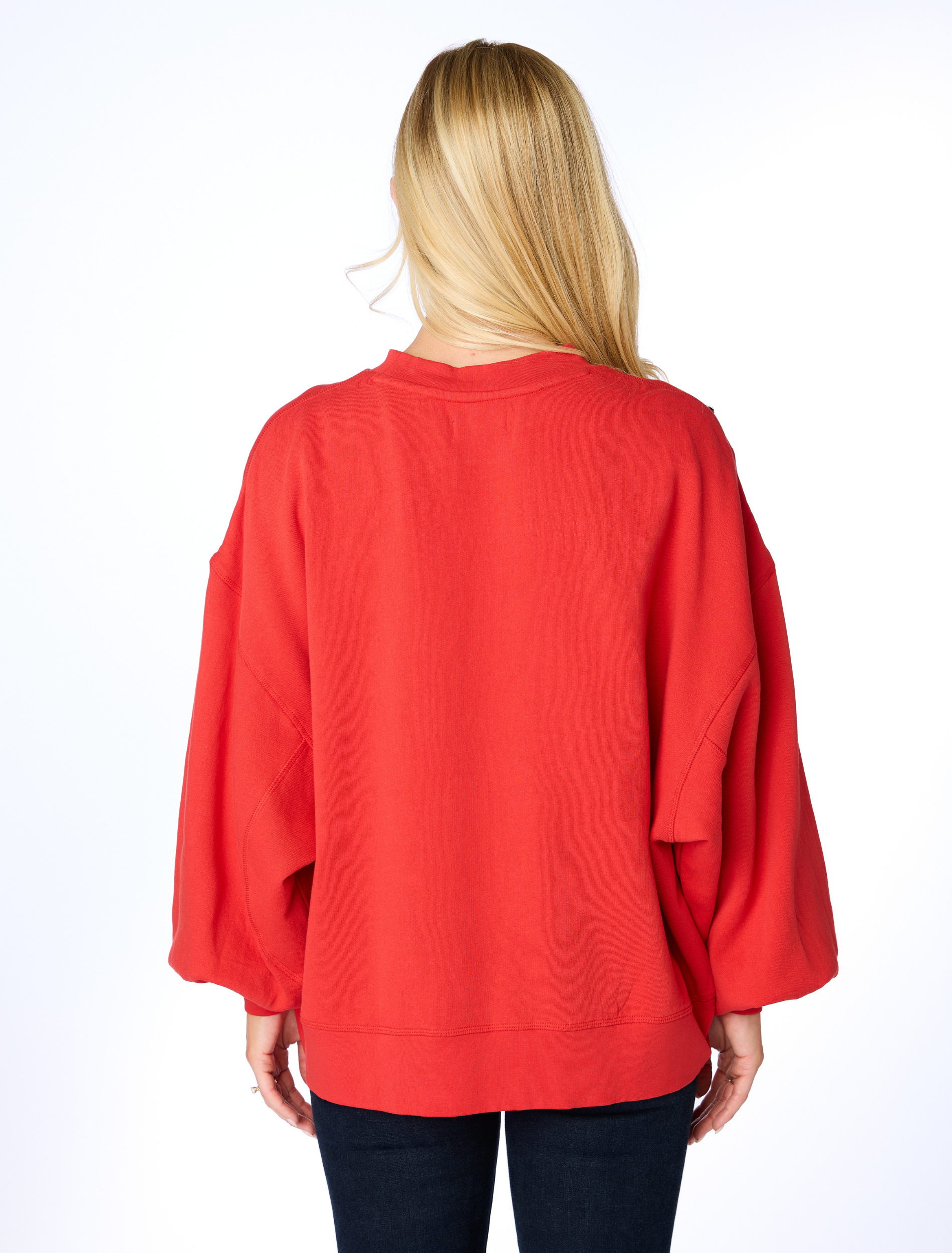 Details Your favorite balloon pullover makes a statement with oversized glitter piping and stars! This top is officially licensed so a portion of your purchase directly supports the university. 100% cotton fleece Sizing Oversized fit Model is 5’ 9” wearing a size S