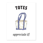 Totes Appreciate It Greeting Card. This 5.5”x4.25” folded card is a testament to our commitment to creating colorful and timeless stationery. The card comes with an included envelope, providing everything you need to send your heartfelt message. As with all our products, this card is proudly made in the USA and hand-assembled in Columbus, Ohio. Share your appreciation in style with Donovan Designs.