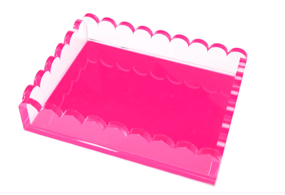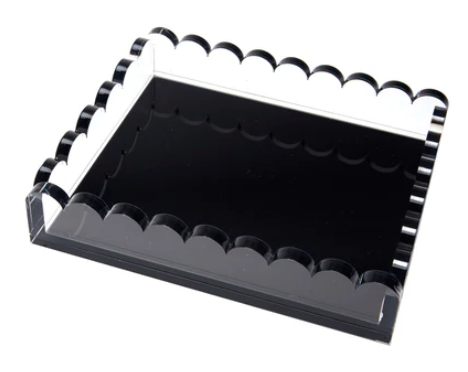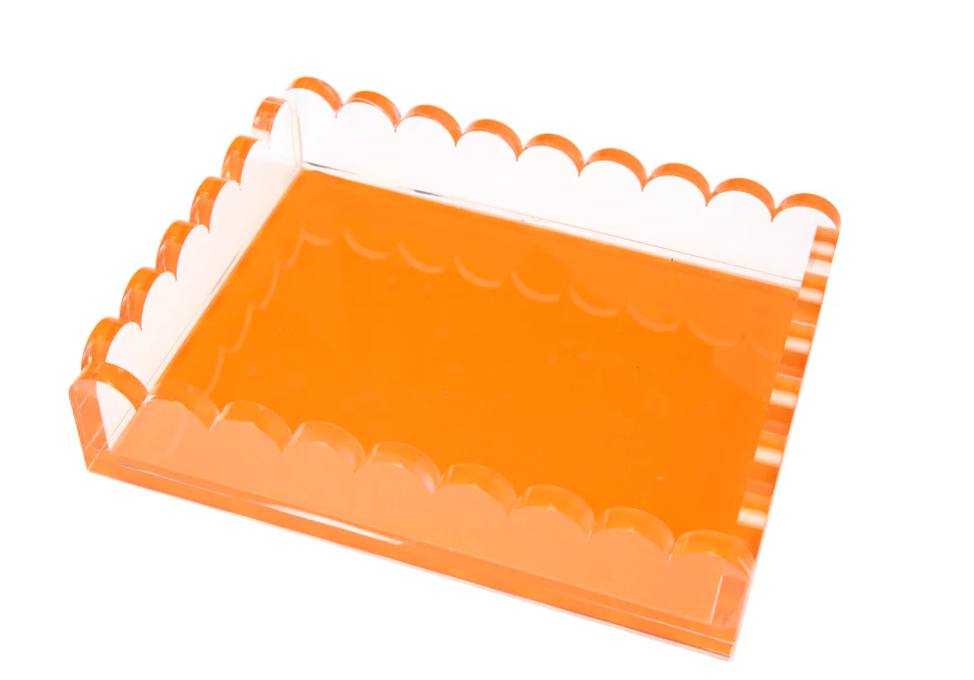 Elevate your decor with our luxuriously thick scallop tray! Designed to add a burst of color and elegance to any space. This tray is both stylish and functional. Perfect for any room. Great for hostess, shower, or wedding gifts.