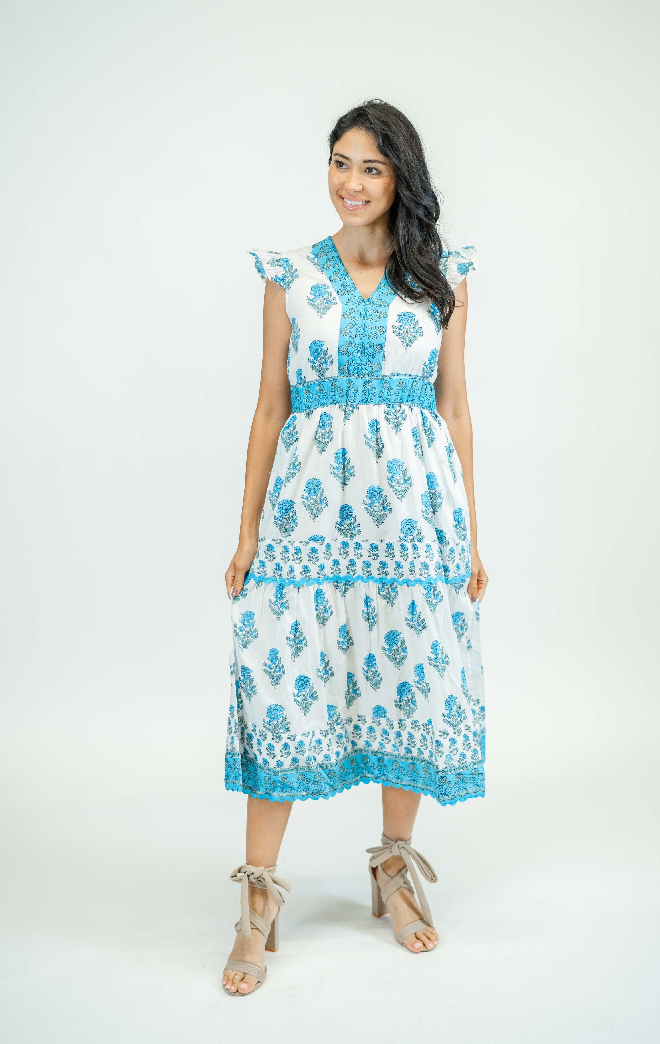 The Hallie is the perfect warm weather dress with its flattering empire waist and elegant flutter sleeves. The empire waist accentuates your figure, while the flutter sleeves add a touch of femininity to your look. Stay cool and stylish all season long with the Hallie.