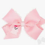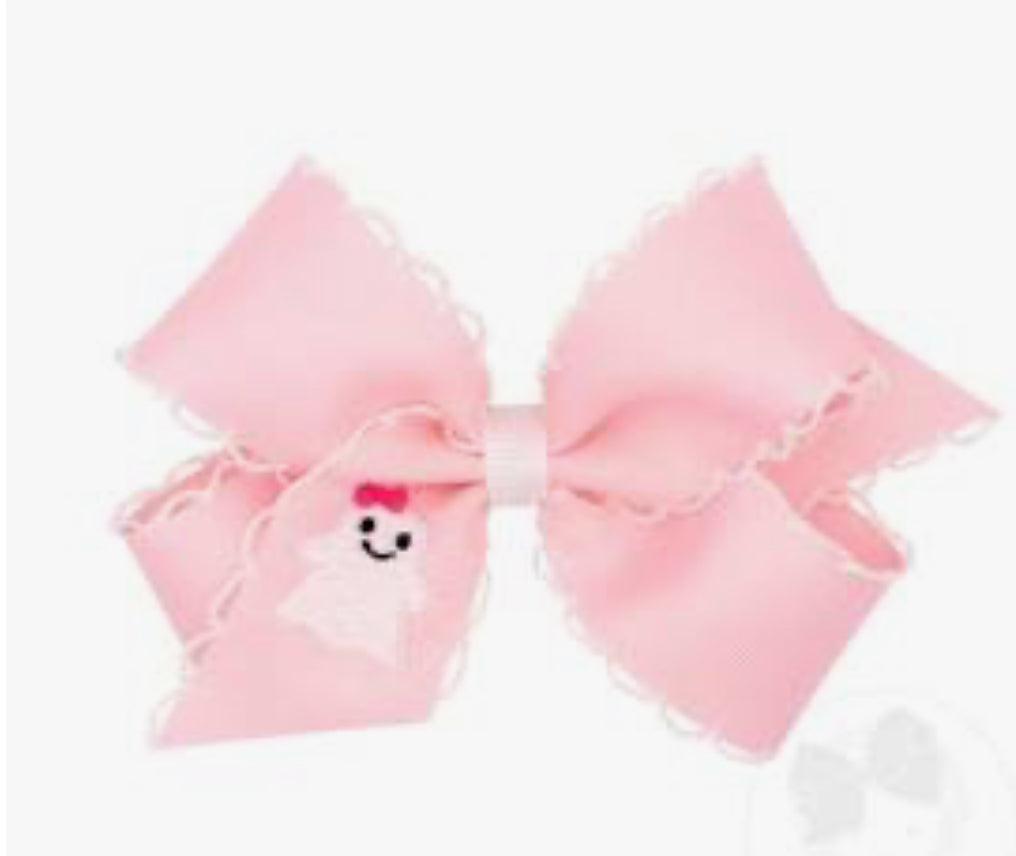 Sporky styles as sweet as her! These Medium grosgrain bows feature classic moonstitch edges and new for Hallowed themed embroidery styles. Perfect for school or trick or treat! This bow is sure to stay in her hair all day with our patented WeeStay™ no-slip hair clip.
