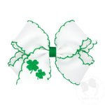 A find as lucky as any four leaf clover! This adorable classic medium Grograin bow features a bright green moonstitch edge and adorable shamrock embroidery. It is sure to stay in her hair all day with our patented WeeStay™ no-slip hair clip!