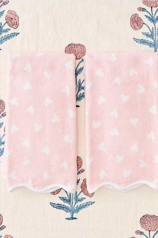 Towel time feeling dull? Our scallop trim adds an instant touch of whimsy and charm to any bath. After years of perfecting, this unexpected detail is hand-cut and hand-finished with the same level of craftsmanship and precision as our best-selling Signature Hand Towels. Our Scallop Hand Towels are plush, absorbent, and designed with a hanging loop to help them dry faster between uses.