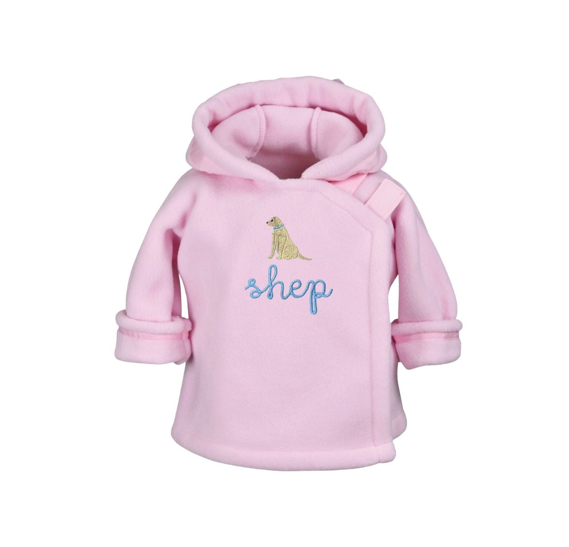Widgeon’s classic Polartec fleece coat is possibly the best infant/toddler outerwear ever made. Flap-over-flap design has hook and loop close for easy on/off and double layer protection for the child’s chest area. The design allows for frustration free dressing and undressing. Grosgrain ribbon at the top of the hood provides a snug fit around the head on windy days. Made from Polartec® Classic 300 with DWR from Malden Mills to insure the best weight-to-warmth ratio possible. The rolled up sleeves and generous sizing allows for some growth before you need a bigger size. It has been a favorite baby gift for over 30 years! Add your own embroidery to create a very special giftable item. 100% Polyester. Machine Washable.