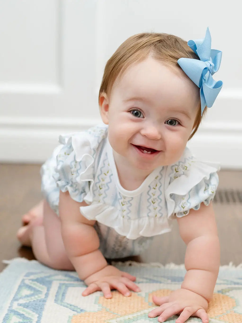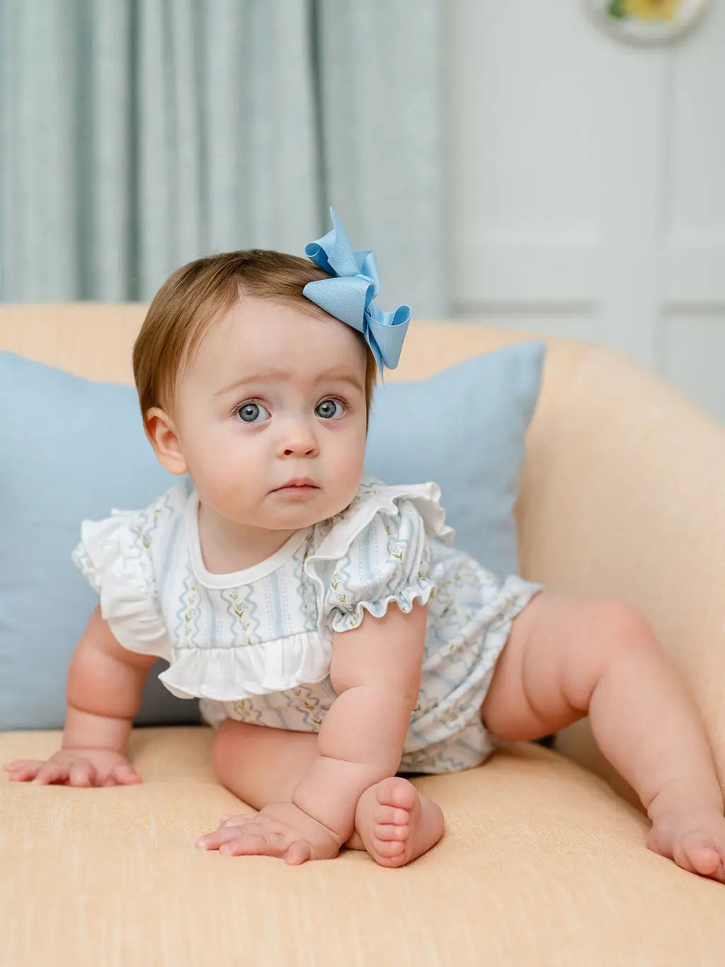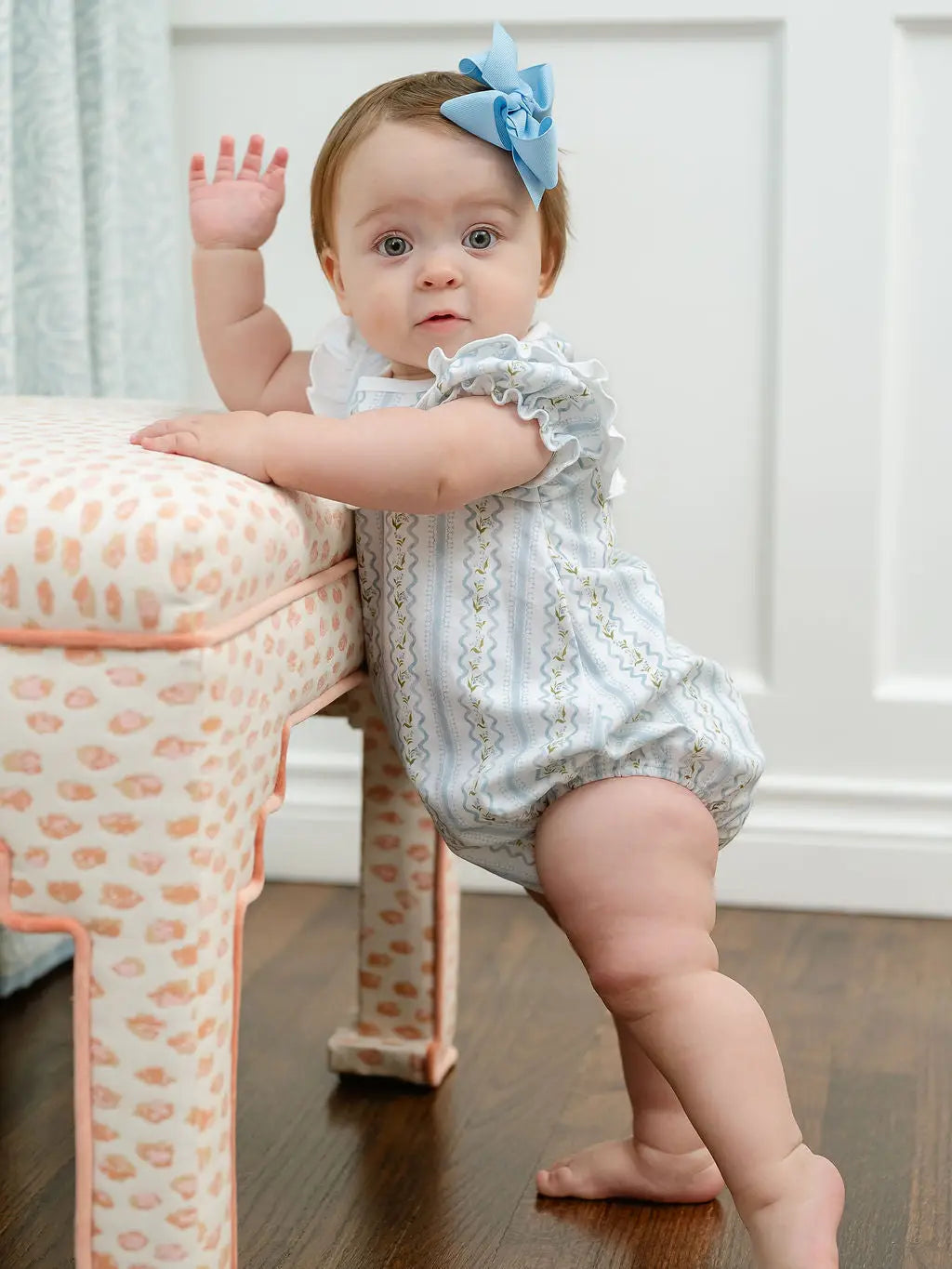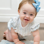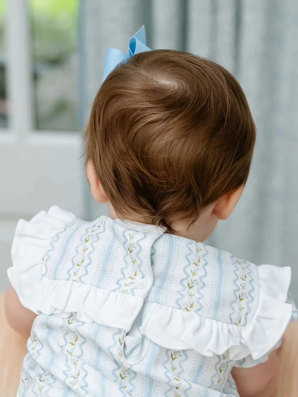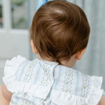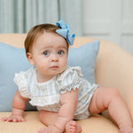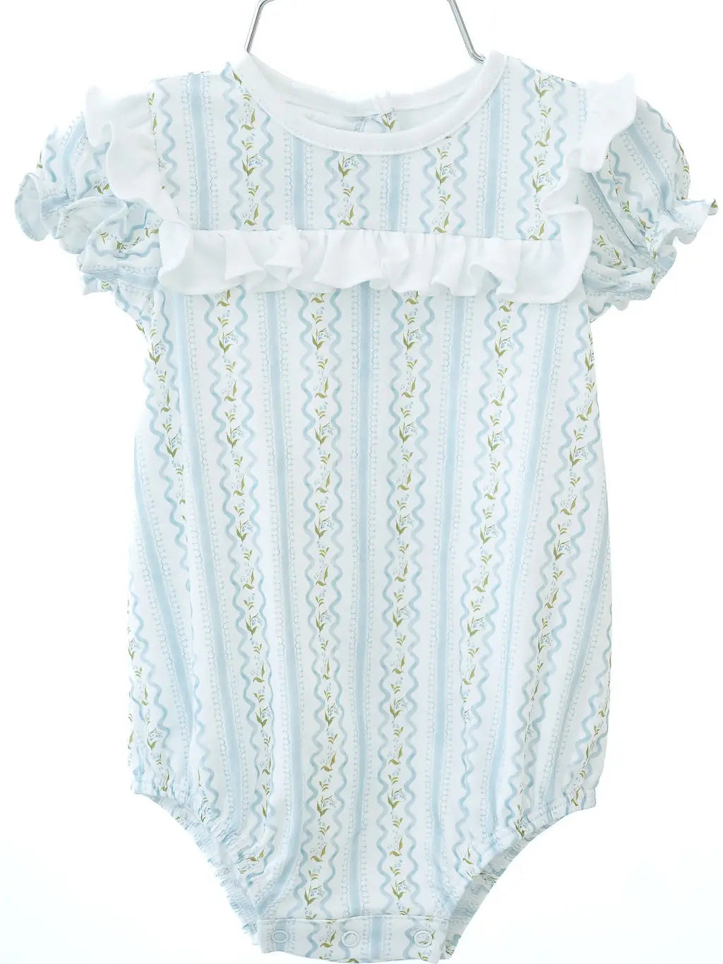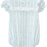 Year round play bubble. Made from 100% soft Pima cotton and features a timeless blue and white Lily Trellis pattern. This classic bubble is detailed with a white ruffle across the bodice, and a soft, comfortable fit—making it ideal for everyday wear, special occasions, and all the moments in between. - 100% Pima cotton - Lily Trellis pattern in blue and white - White ruffle detail across the bodice