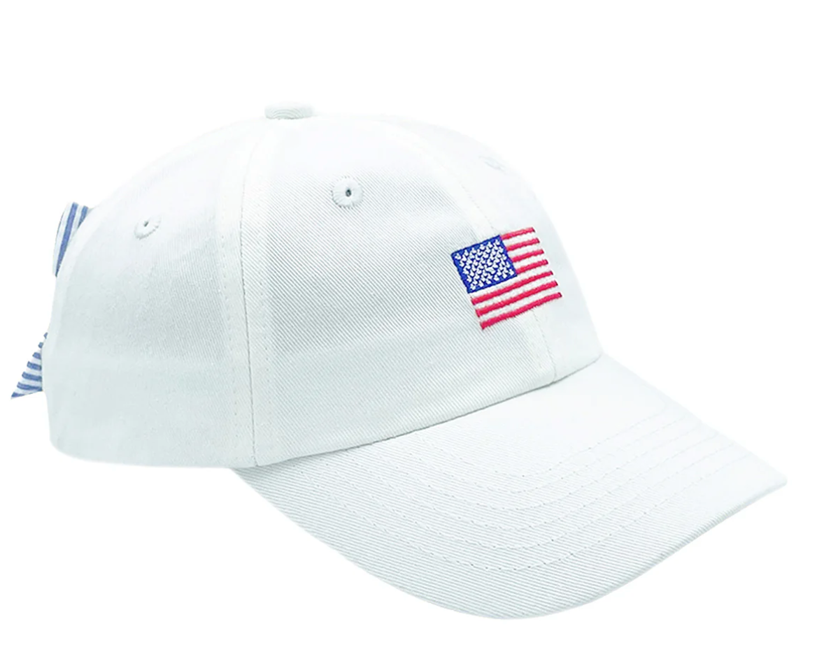Each Winnie White soft cotton twill hat is embroidered with an American flag in front, classically crafted to make shielding from the summer sunshine simple, stylish, polished, and patriotic. Also available in baby, youth, and junior sizes for magical family matching moments.