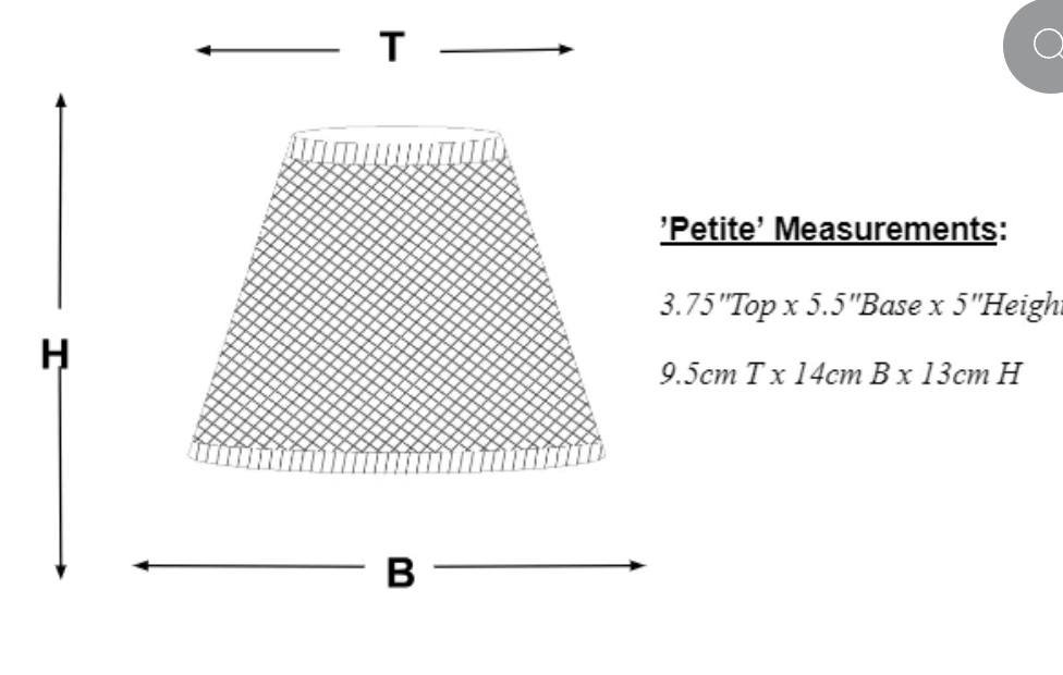 - 3.75″Top x 5.5″Base x 5″Height / 9.5cm T x 14cm B x 13cm H